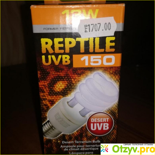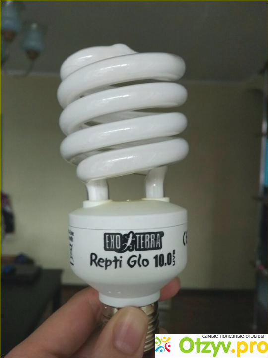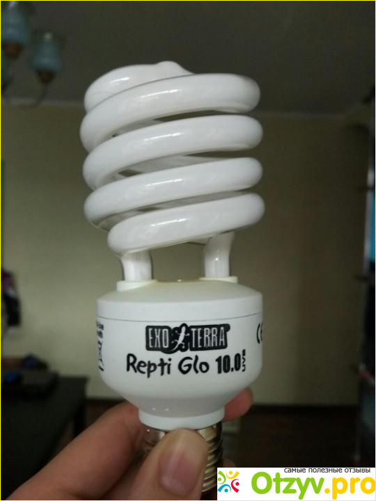 У меня есть уже довольно взрослая сухопутная черепаха. И я обустроила для нее большой террариум, в котором есть и ультрафиолет. В моем городе не так-то просто купить качественный свет, поэтому я приобретаю то, что завозит зоомагазин Ветна, а именно УФ лампу репти гло 10 компакт от экзо терра. Она стоит около 2000 рублей. Лампа представляет собой точную копию энергосберегающей лампы, но дает ультрафиолетовое излучение. У нее широкий цоколь и пластиковое основание, тем самым ее можно вкручивать в обычный навесной плафон и с комфортом располагать в любом террариуме.