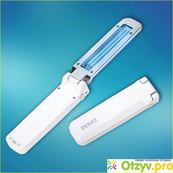 Ультрафиолетовый дезинфектор имеет небольшие размеры, примерно как телефон только он раскладывается на две половины, на одной из которых установлена лампа которая и излучает обеззараживающие лучи, хранить его лучше подальше от маленьких детей. Дезинфектор Denas совершенно безопасен, и не составляет никакого вреда для вашего здоровья.