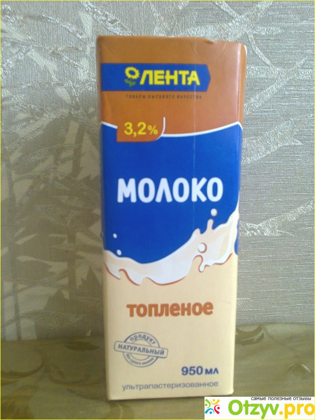 Ультрапастерилизованное топленое молоко с массовой долей жира 3,2% она постоянно покупает в гипермаркете "Лента". Так как в нашем городе тоже осенью 2014 года открылся гипермаркет "Лента", то я тоже постоянно стала приобретать такое молоко для чая и кофе. Топленое молоко мне очень понравилось, так как оно напоминает мне детство, когда моя бабушка томила молоко в чугунке в русской печи, когда молоко было коричневого цвета, а сверху была коричневая пенка. Топленое молоко расфасовано в удобной коробке-упаковке Tetra Pac, которая устойчива и хорошо стоит в холодильнике и на столе. На верхней части упаковки находится крышечка, что очень удобно. Всего в коробке 950 мл молока, которое изготовлено из цельного молока и обезжиренного. Как указывает производитель в топленое молоко сухое молоко не добавлялось. Данное ультрапастерилизованное натуральное молоко хранится всего 6 месяцев со дня его изготовления. Если упаковка вскрыта, то молоко необходимо держать в холодильнике не более 3 суток. Топленое молоко очень вкусное, натуральное и полезное.