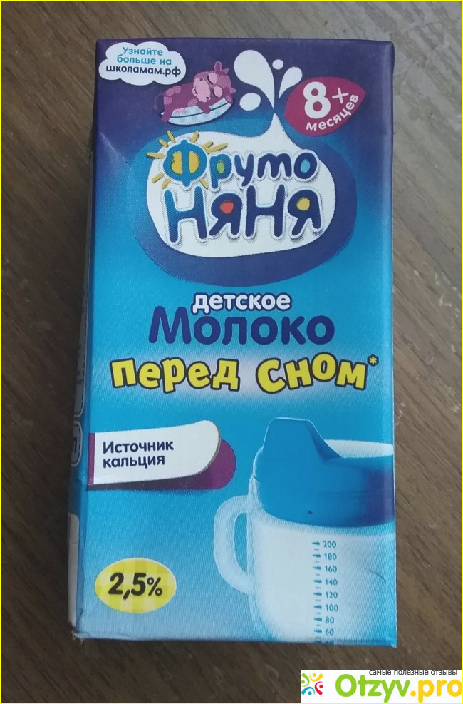 Ультрапастеризованное питьевое молоко перед сном "Фруто Няня" с массовой долей жира 2,5% я купила в гипермаркете "Лента", когда с мужем собирались ехать отдыхать в санаторий. Упаковочку объемом 200 мл я купила в дорогу, чтобы в поезде пить чай и кофе с молоком. Сливок в небольших упаковочках не было и мне пришлось купить эту.