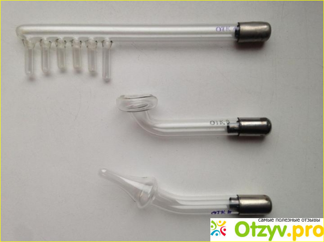 К прибору прилагается целый арсенал различных электродов-это такие стеклянные насадки, призванные сделать удобным воздействие током на разные участки тела. Но наиболее удобным мне показался грибовидный электрод, которым я и пользовалась в течение десятидневного курса лечения.