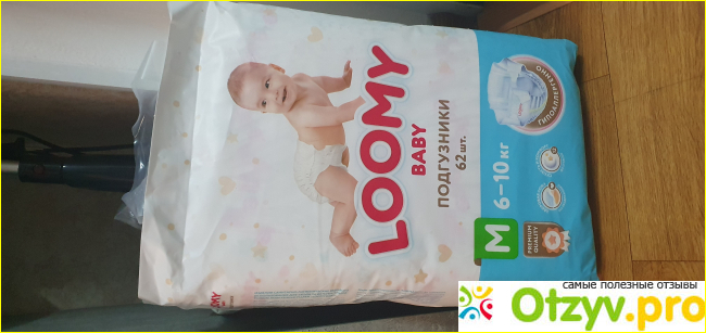 Выбирать пришлось очень тщательно, но мы все же нашли подходящие и остановились на выборе нескольких из них. Сегодня расскажу про подгузники производителя Loomy Baby , ультратонкие, размер M, 6-10кг, в пачке 62 штуки.