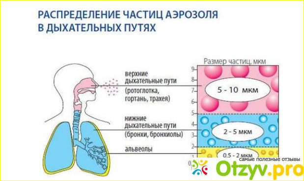 В ингаляторе ультразвуковые колебания воздействуют на сам лекарственный раствор и таким образом создаётся лечебный аэрозоль. Прибор безопасный, потому что ультразвуковые колебания за пределы самого аппарата не выходят. Диаметр 80% частиц, распыляемых этим ингалятором - 4 мкм.