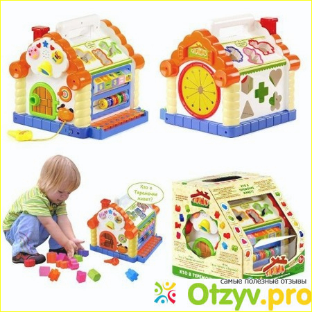 Такой домик подарили моему племяннику на годик. Несколько раз приходила к ним и видела, с каким интересом ребенок играет. Домик состоит как бы из разных заданий, которые должен со временем выполнить ребенок.