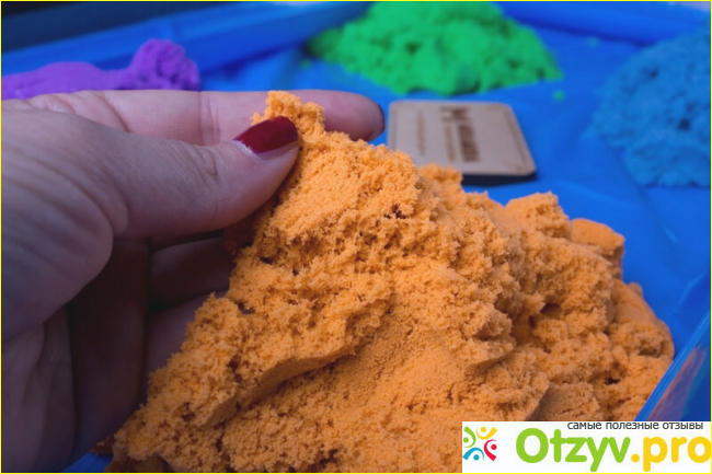 Это песок, которым ваш ребенок может играть в любое время года, даже в квартире. Он по консистенции напоминает песок после дождика, немного сыроват. Но это находка. которая плавно перетекает, не рассыпается везде, где только можно, отлично сохраняет форму, а выглядит как самы обычны песок. Цветов такого песка есть огромное количество. Также если вы купите свое крохе набор из нескольких цветов, ребенок может их смешать и получить свой собственный цвет. Он сыпучий, достаточно податливый, но вместе с тем имеет довольно плотную консистенцию. Такой вроде бы сыроват на первый взгляд песк не высыхает со временем, что делает его практичным и долговечным.