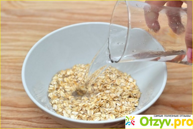 Столовую ложку овсяных хлопьев заливаем горячей кипяченой водой, даем распариться 15-20 минут.