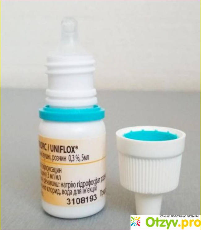 Капли мы легко купили в аптеке. Унифлокс представляет собой препарат, который отлично и эффективно борется с микробами, также его можно закапывать не только в уши, но и в глаза. Важно это делать не самостоятельно, а по назначению врача. Капли не рекомендуется применять детям до 3-летнего возраста. В четыре с половиной годика доктор нам прописал капать капельками три раза в течении дня по две капли. Сразу необходимо было закапывать оба ушка, поскольку и второе также начинало болеть. Это поможет более быстро справиться с отитом, не дожидаясь вновь повышения температуры. Действующим веществом, которое оказывает свое действие, в составе капель является офлоксацин.