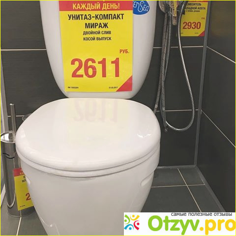 Главный плюс унитаза Мираж в том, что нет не плюхов, ни брызг в момент "заседания". Второй не маловажный плюс, это разумная цена за унитаз.
