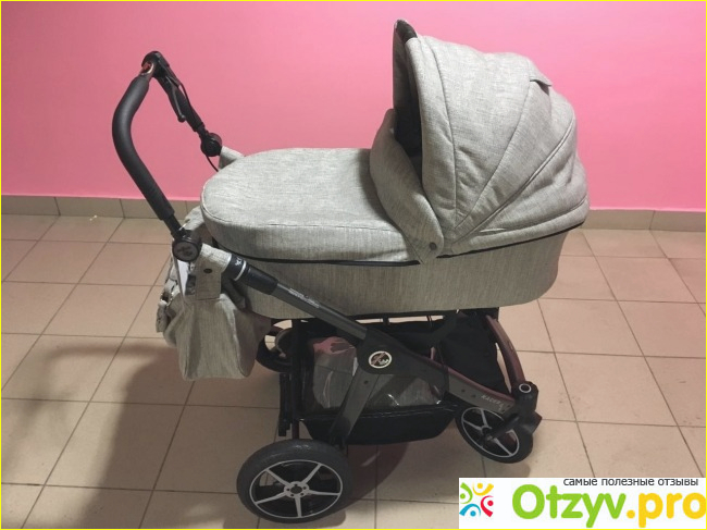 В комплекте спальный блок, прогулочный блок, москитная сетка и дождевик. Мы докупили муфту для рук (потому что зимой руки очень мерзнут) и сумку для мамы (еще мне понравился рюкзак для мамы, думаю, прикуплю и его). Мне коляска очень понравилась. Такой шикарный вездеход для малыша. Управляется она легко. Колеса фиксируются, и они поворотные. Из чего сделаны колеса я не знаю, но они есть, и они не прокалываются и на морозе не деформируются. Шасси у коляски 59 см, поэтому она с легкостью проходит в любой лифт. Большая люлька, ее можно использовать как переноску. У нее есть смотровое окошечко, кармашки для мелочей. Прогулочный блок просторный, раскладывается до положения лежа. Большой капюшон (со смотровыми окошечками), надежные ремни безопасности, съемный бампер (отстегивается легким нажатием пальцев). Капюшон у прогулочного блока трансформируется в козырек от солнца (будем испытывать его летом, должно быть очень удобно). Подножка у прогулочного блока растет вместе с ребенком, мне кажется это очень удобно. Блок можно устанавливать по/против хода движения. Еще очень важная для меня деталь в коляске это светоотражатели (они есть даже на ручке).