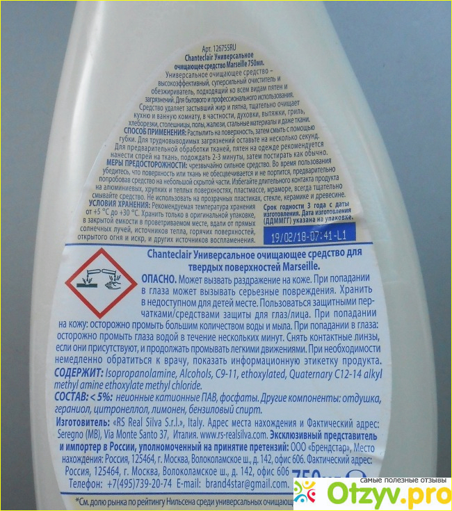 Мне было необходимо мощное средство для очистки поверхностей кухонной техники - газовой плиты, вытяжки, микроволновой печи. В "Метро" я увидела универсальное очищающее средство Marseille итальянского производства.
