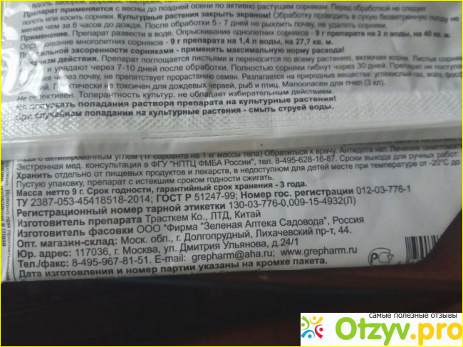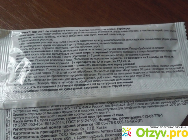 Хорошее средство, самое главное, что действенное. А второй огромный пункт- это дешевизна. Очень дешевое средство, любой себе позволить сможет. Плохо, что вредит культурным растениям, если попасть на них препаратом, но этого никак не избежать.