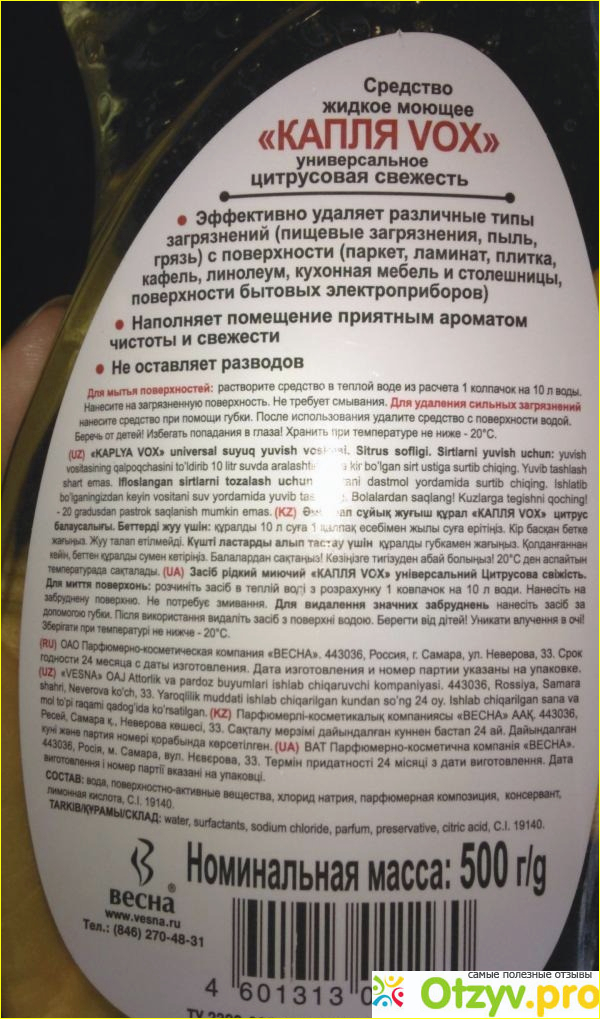 Универсальное жидкое моющее средство Весна Капля VOX.