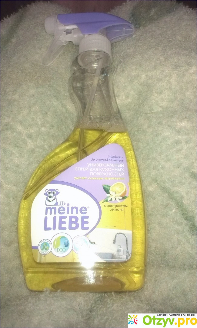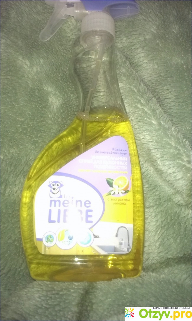Кухня- это то место в нашем доме, которое требует чуть ли не ежедневной уборки. Покупать множество узконаправленных в действии средств не очень хочется, поэтому я нахожусь в поиске универсального средства для уборки кухни. Последним моим приобритением стал универсальный спрей для кухонных поверхностей " Meine Liebe".
