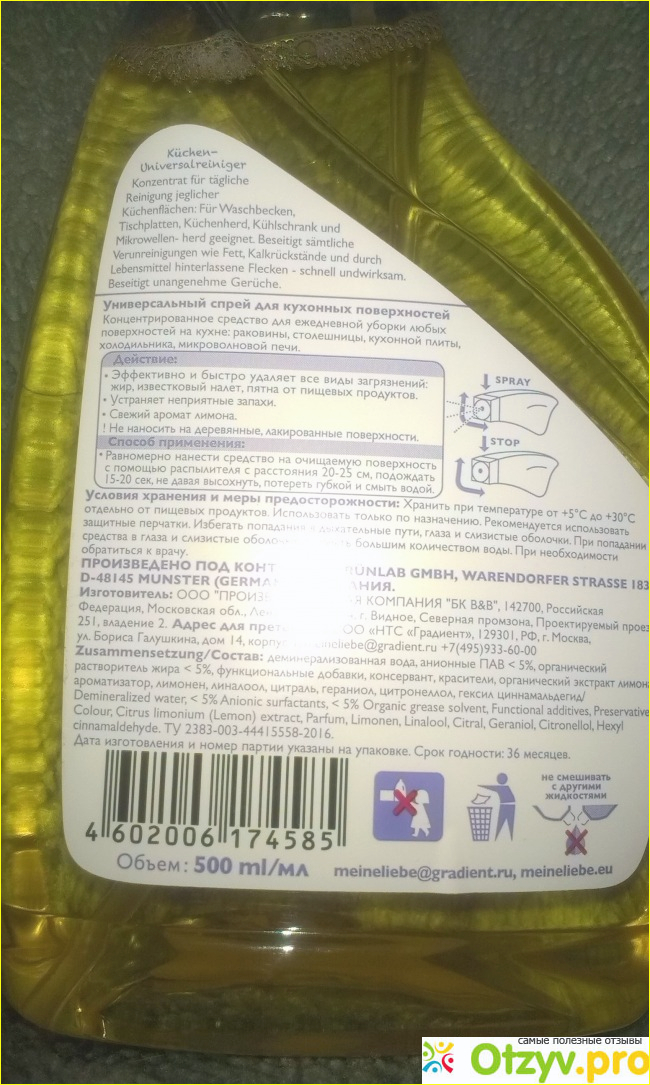 Больше повторять покупку универсального спрея для кухонных поверхностей не буду и вам не советую. Моя оценка 3 из 5 баллов. Спасибо за просмотр. Надеюсь, мой отзыв был вам полезен. До новых встреч!
