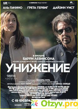 Здравствуйте дорогие читатели! В этом отзыве я хотела бы рассказать вам о фильме кинорежиссёра Барри Левинсона, который называется "Унижение". Данный фильм появился на экранах в две тысячи четырнадцатом году (2014 г.), он был снят по мотивам романа Филипа Рота. Он драматического жанра, но в нем присутствуют и комедийные моменты.