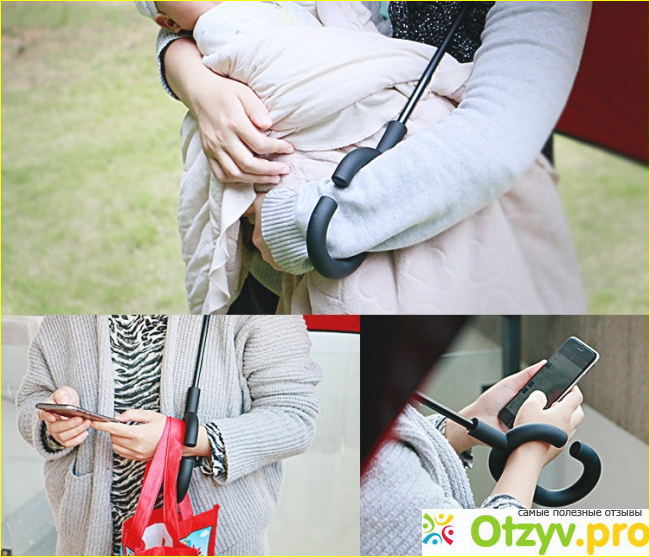 Особых слов заслуживает и система «свободные руки», которой снабжен зонт. Теперь одновременно удерживать зонт над головой и придерживать его за ручку вовсе необязательно. Закругленная конструкция, напоминающая браслет, легко надевается на руку и позволяет заниматься любыми делами, не мешая и не ограничивая движений. Вы можете даже одновременно держать зонт над головой и баюкать малыша.