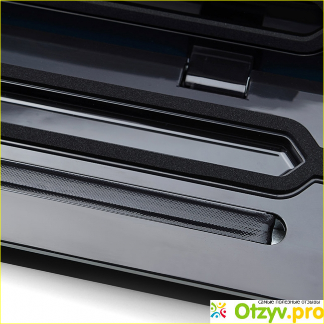 Удобство данной модели заключается в том, что во время использования прибора не нужно постоянно придерживать его верхнюю крышку. Как только прибор начинает откачивать воздух, крышка прижимается автоматически. А как только будет нажата кнопка по отключению откачки воздуха, то крышка автоматически откроется. Благодаря этому прибор очень просто и легко использовать.