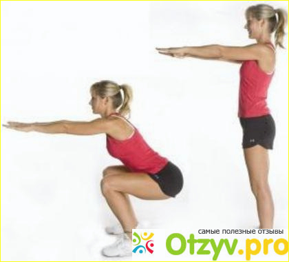 1) Начнем с самого простого- приседания. Но у этого, казалось бы легкого упражнения, есть свои важные правила. Для того, чтобы нагрузка шла правильно и вы не выполняли упражнение впустую, спину нужно держать только ровно и пятки нельзя отрывать от пола. Еще более эффективны будут приседания с выпадом.