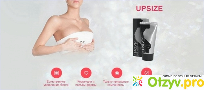 Upsize - это прекрасный крем, который помогает устранить многочисленные изъяны груди и даже помогает увеличить грудь на один два размера. Данный крем не только совершенствует состояние груди, он так же помогает улучшить состояние кожи, он идеально подходи для устранения растяжек на груди, а так же подтягивает грудь. Применяя данный крем, грудь постепенно становится более упругой, она постепенно становится более налитой, ее состояние действительно на глазах улучшается. Все это происходит только благодаря тому, что состав крема подобран таким образом, чтобы все данный свойства проявить на груди. При этом, никакого вредного влияния коем не оказывает.