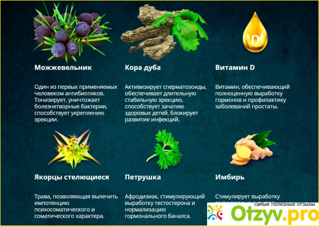 Препарат содержит в себе только натуральные компоненты, которые соединены в правильном сочетании. Препарат, как обещает производитель, способен вернуть сексуальную активность и вернуть настроение и вкус к жизни. Лекарство может увеличить кровоснабжение половых органов, благодаря чему вернется и их функциональность. Что конкретно обещает препарат: