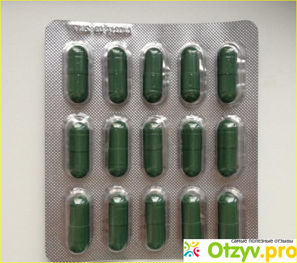 Препарат выглядит как капсулы тёмно-зелёного цвета, которые расфасованы в блистеры. В каждом блистере - 15 капсул. Помимо информации на коробке, внутри упаковки есть инструкция.