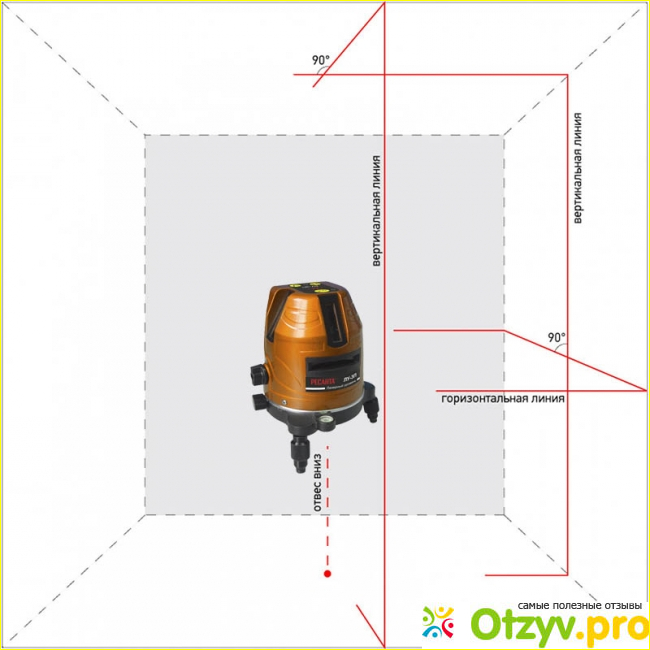 Прибор проецирует две вертикальных и одну горизонтальную плоскости.