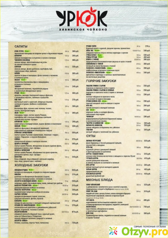 А вот что можно там такого вкусного покушать, сейчас расскажу чуть подробнее, во первых это традиционный зимний салат оливье. Стоить будет 250 рублей за 150 грамм. Суп пюре куриный 220 рублей за 200 грамм, салат помидорка 250 рублей, за 160 грамм, угра ош детский это бульон 250 грамм за 200 рублей. Всеми любимые наггетсы за 300 рублей. Из горячего могут предложить домашние пельмени с телятиной за 290 рублей за 120 грамм, равиолли с курицей под сыром за 290 рублей 90 грамм. Также готовят вкусные на вид пиццы с Маргарита 210 грамм за 345 рублей и сырная пицца 190 грамм за 365 рублей. Также готовят бургеры очень краисывые и аппетитны, один из них к примеру бургер с телятиной детский 120 грамм 340 рублей. А также куриные шашлыки с картошкой фри 310рублей. Да но не забывают в кафе "Урюк" и о десертах, кстати на них цены более демократичные мне показались, к пимеру пирожное с яблоком за 70 рублей 100грам, а еще могу привести пример пирожок с вишней за 75рублей и много чего еще там продают.