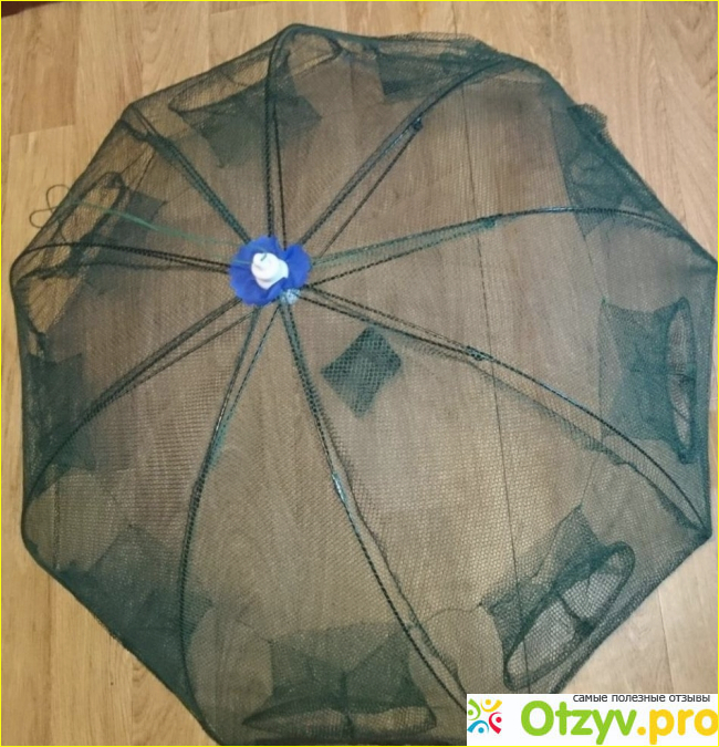 В собранном состоянии Усовершенствованная рыболовная верша-паук это просто как сложенный зонтик. Занимает минимум места. Удобно транспортировать.