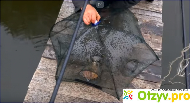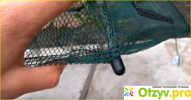 Дальше сетку нужно опустить на дно, хорошо закрепить леску и ждать. Когда вы поднимете вершу, через специальный карманчик со змейкой, сделанный на боку вещицы, можно извлечь рыбу и приманку. Но вообще вполне можно завести руку и через отверстия для захода рыбы.