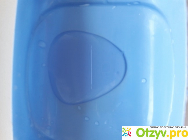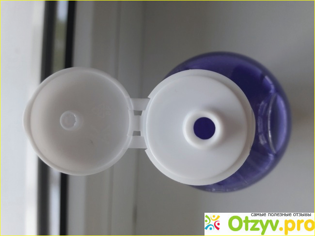 У бутылки белая закручивающаяся крышка с откидным верхом. Отверстие среднего диаметра, необходимое количество геля можно дозировать легким нажатием на бутылку.