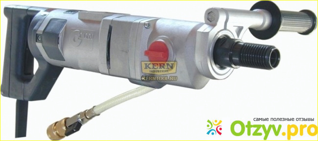 Отлично справляется со своей задачей. С её помощью легко можно сделать отверстие практически в любом материале. Диаметр отверстия может варьироваться с помощью подбора определённой коронки. Я для своих целей приобрел уже две дополнительные коронки, стоимость терпимая. Бетон поддается на ура, а вот с известняком чуть похуже дела обстоят - немного подклинивает, и то не всегда в основном в более старых постройках. Также проблемы заметны при резке арматуры с толщиной более 20 мм, а до 20 мм - легко и быстро! Установка снабжена тремя скоростями - чем больше требуемый диаметр отверстия, а соответсвенно и и диаметр используемой коронки, тем на более низкой скорости мы работаем, и наоборот - если маленький диаметр - самая высокая скорость. Аппарат снабжен предохранителем, который на случай перегрузки всё выключит. К дополнительным приобретениям следует также отнести бак для подачи воды и крепеж для него. Одним словом, эта алмазная установка - очень нужная вещь в хозяйстве, так как помимо времени, экономится огромное количество сил. Перфоратором такие отверстия сделать достаточно сложнее, а в отдельных случаях даже невозможно.