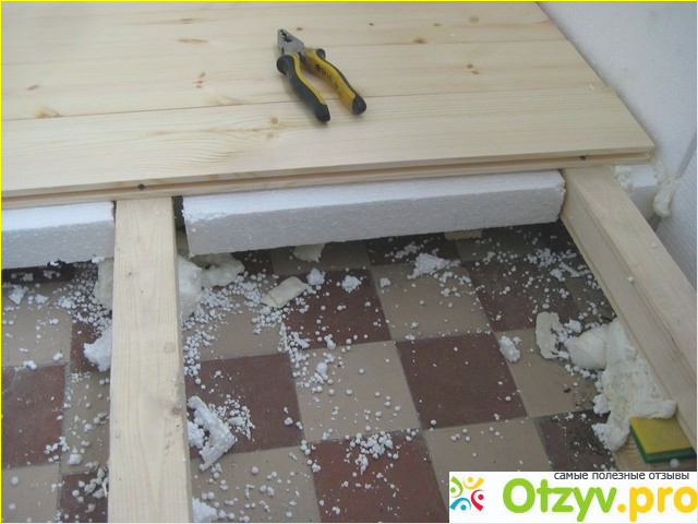 Для утепления не нужно выставлять деревянные бруски и закрывать это все фанерой, достаточно будет утеплить все снизу, так как это будет намного дешевле и эффективней и сохраните высоту от пола до потолка. Пенопласт понадобится 10 см, крепит его снизу между бруса к доскам саморезами с шляпками для фиксации его к полу, ведь именно снизу идет весь холод на пол тем самым он становится холодным, после того как крепеж пенопласта закончен не стоит закрывать его какими либо пароизоляцией а тем более полиэтиленом ведь будет скапливаться конденсата и будет образовываться плесень и гниль. Надеюсь моя рекомендация была для вас полезной и у вас все получилось на отлично, оставляйте свои комментарии.