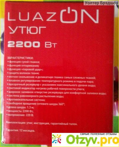 НО, сказка сказывается, а мое дело делается, и вот в магазине Хоум Маркет я решила купить ЕГО, И цена-то была всего-то 645 рублей, вроде бы недорого, для такой-то нужной вещицы, подумала я, и выложила на кассе всю сумму. Обратила внимание на качественную картонную коробку, симпатичная, всё при делах, ничего критичного и дешевого. На упаковке вся нужная информация про товар, написано на русском языке, что уже меня успокоило. Да и характеристики меня обрадовали: утюг мощностью в 2200 Вт да за такие деньги, пффф, красотища!
