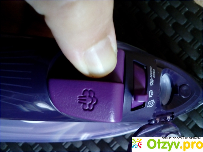 Так как утюг паровой, то три необходимых составляющих выделим в первую очередь. Это распылитель, крышка наливного отверстия и, конечно же, парорегулятор, включающий четыре функции: функцию очистки от накипи (Calc - Clean), глажение без пара, максимальную подачу пара и интенсивный выбор пара.