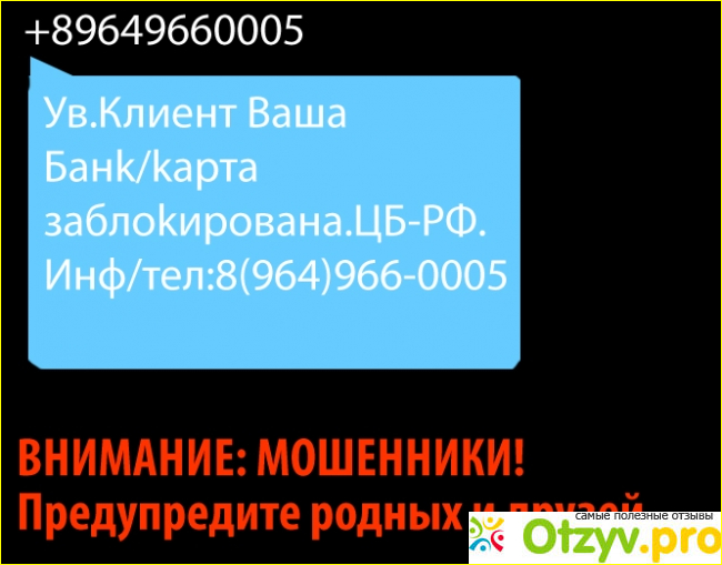 После того, как я получила на свой телефон смс-сообщение с подобным содержанием: «Ув. клиент Ваша карта заблокирована. ЦБ-РФ. Инф/тел: 8(964) 966-0005», я сразу слегка запаниковала, но потом взяла себя в руки и успокоилась. Первым делом я решила скопировать этот текст в поисковую строчку браузера и посмотреть, какой он мне результат выдаст. Прежде всего меня интересовал именно указанный в СМС номер телефона — правда ли он принадлежит тому банку, в котором я уже давно обслуживаюсь? Да и вообще странно, с какой бы это стать вдруг банк стал блокировать мою банковскую карточку?! Я ее не теряла, никому не передавала. Да я ею даже не пользовалась почти, только несколько раз в месяц зарплату снимала и все!