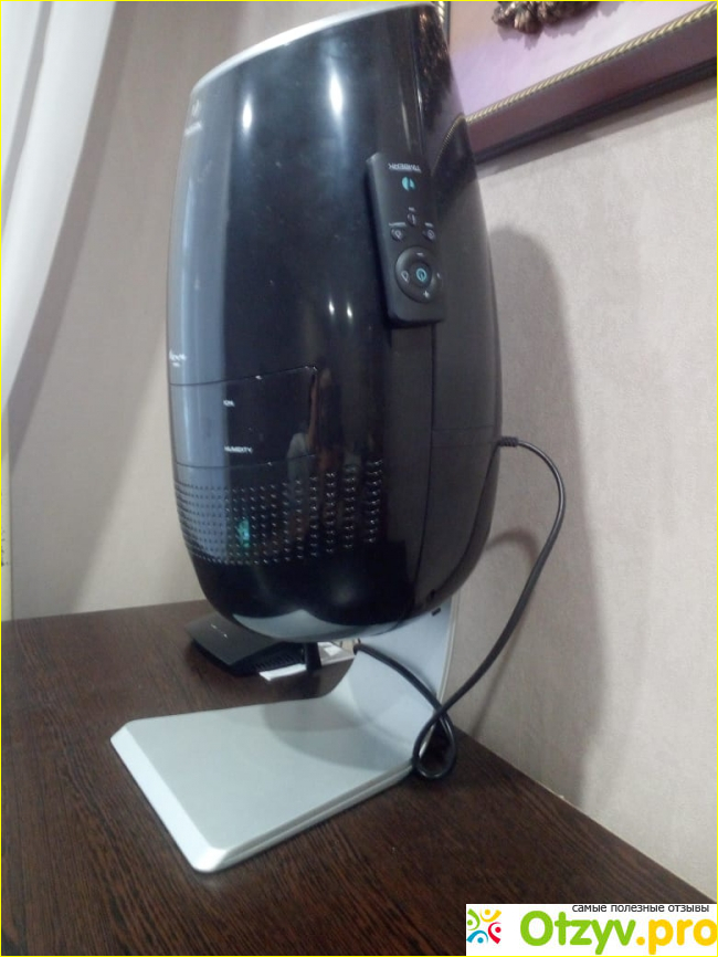 Эта модель очень стильная и отлично вписалась в наш интерьер, есть пульт управления, который легко крепится за корпус бака, объем бака 3,7 литра, отлично увлажняет, есть 3 режима увлажнения, потребляет мало электроэнергии (25 Вт), есть фильтр для умягчения воды, практически бесшумный, воду очень легко менять, легко мыть, мы заливаем просто фильтрованную воду (у нас не жесткая вода), есть сенсорный экран, есть таймер, можно легко поставить таймер на определенный % увлажнения, который будет поддерживаться без вашего участия, нет никакого белого налета на мебели.