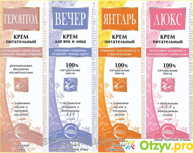 Покупала ее в фирменном магазине, она мне не подошла. Вместо ухода и улучшения на коже я заметила проблемы. Кое-где сухость и шелушение, и даже угревая сыпь. Данная реакция означает только одно – косметика не подходит, а потому нужно от нее отказываться, чтоб не ухудшить плачевное состояние кожи. Пришлось отказаться от данной серии, подарила сестре, и она ею довольна. Порой даже самые химические косметические продукты мне больше подходят. Потому я иногда засматриваюсь на самую дешевую косметику. И нахожу для себя хорошие продукты. Недавно открыла один крем, который производит фирма – Свобода. Это ночное средство, которое мне идеально подходит не для лица, как рекомендовано производителем, а для рук. Причем для зимних морозов это вообще идеально. У меня сухая кожа зимой на кисти, шелушение, трескается кожа в некоторых местах от этого. Мама советовала пользоваться жирными кремами. Они слабо помогали, но ненадолго, и очень быстро кожа адаптировалась к средству, а потому эффекта особого не было. Когда купила крем "Янтарь" и начала им пользоваться, то напрочь забыла о шелушении и сухости. Правда, у данного продукта достаточно нюансов, благодаря которым мало кто согласится его тестить, но ознакомить данный продукт с Вами я просто обязана. А покупать – решать Вам. Я бы рекомендовала его в качестве защиты и увлажнения, питания, с ээитзадачами он вполне справляется. Но для любителей органики он вряд ли подойдет. Все же в составе много химии, хоть производитель и пишет красиво на самом тюбике – 100% натуральные масла. С этим я бы поспорила, но обо всем этом чуть позже.
