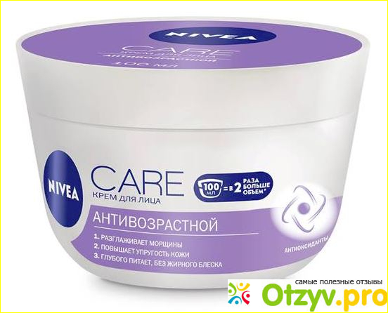 Антивозрастным увлажняющим кремом для лица NIVEA Care пользуюсь две недели и могу сказать , что он мне понравился, так как совершенно не имеет жирного блеска уже в минуту нанесения и ощущения жирности тоже нет совсем.