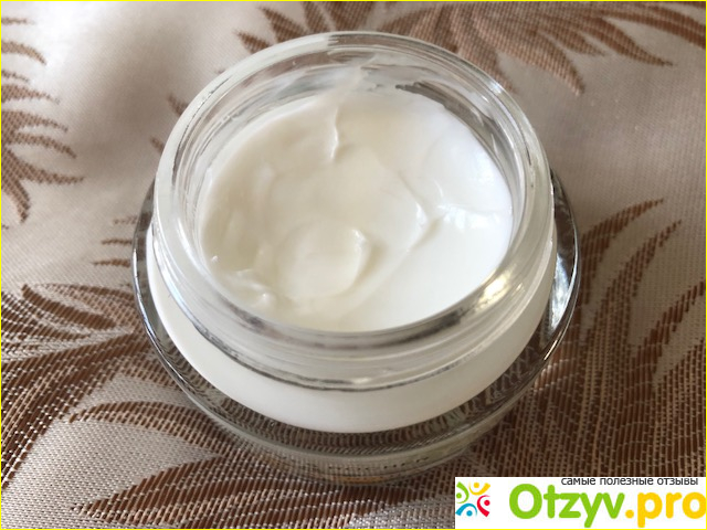 Крем белого цвета, достаточно густой, но при этом довольно быстро впитывается: