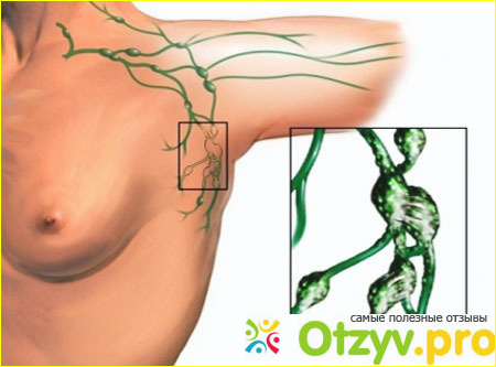 Как она его обнаружила. Есть специальный тест на проверку уплотнения. Она подняла руку и вот всё ощутила при прикосновении. Лимфотический узел может увеличится только при ряде следующего заболевания, это онкологическое. Т. е. обнаружение рака груди.