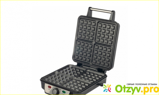 Данная вафельница рассчитана на 4 вафли или бутерброда. Да-да, бутерброды тоже можно делать на ней! Она довольно большая, но прогревается быстро. Есть регулятор (ручка-крутилка внизу). Покрытие рабочих поверхностей хорошо отмывается влажной тряпочкой, тесто или вафли не прилипают к нему, хотя, может, пока новое просто, а дальше видно будет. Чёрный материал рабочих поверхностей — это что-то наподобие тефлона, антипригарное покрытие. Ничем посторонним оно не пахнет, так и должно быть, все таки поверхность контактирует с пищевыми продуктами.