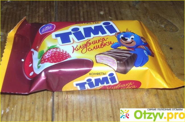 Но, пожалуй, вафельные конфеты "Тими" со вкусом клубники со сливками пополнят тот список вкусных вафельных конфет. А они еще и красивые, обертка очень яркая и привлекательная, так как сделана в ярких тонах, на ней изображены симпатичные рисунки, в общем-то, в глаза очень сильно бросаются эти конфеточки.