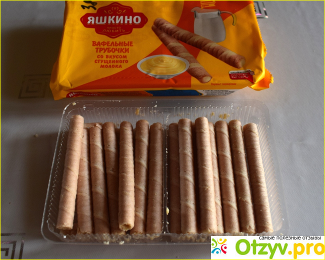 Корпус трубочек – это тонкий вафельный слой. Вафли сладкие и хрустящие.