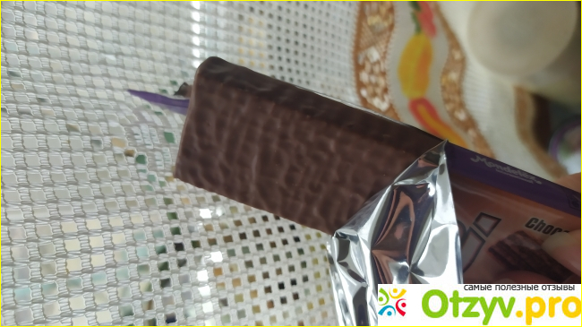 Несмотря на растительное масло в составе, шоколадная глазурь нежная и вкусная. Вафельки очень тоненькие и воздушные, приятно хрустят. Начинка внутри темная, с добавлением какао. Начинка нежная, без привкуса маргарина и лишних ароматизаторов.