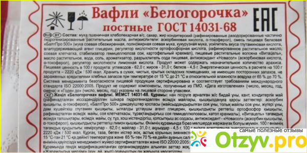 Изготовлены вафли по ГОСТу и не содержат ГМО, уже один плюс в пользу этих вафель.