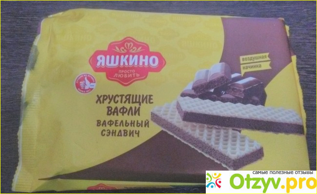 Несколько дней назад дочь выпросила данные вафли производителя Яшкино "Вафельный сэндвич". Упаковка выглядит очень привлекательно, ребенок сразу отреагировал на нее. Дочь любитель шоколада и просто не могла пройти мимо.