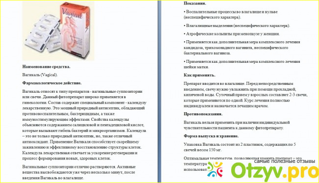 Положительным свойством свечей "Вагикаль" является их натуральность. Ведь основное действующее вещество - всем известная календула.