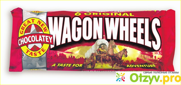 Выбрала я в магазине несколько пачек печенья Wagon Wheels. Это печенье из детства, помню похожие упаковки в продаже. Долгое время его не продавали в наших магазинах.