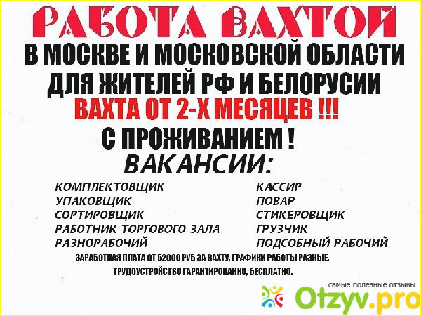 Здравствуйте, дорогие читатели моего отзыва, речь в нем пойдет о работе вахтовым методом в городе Москва, в этом отзыве вы узнаете куда стоит ехать на заработки и как правильно выбрать работу такого рода. Начну с того, что я ездил на вахту, и это очень страшно, потому что не все организации способны платить, многие просто кормят завтраками, а многие не платят деньги вообще, некоторые платят, но не столько сколько обещают, думаю, что если вы можете все и руки ваши растут из того места от куда расти должны, то вы найдете хорошую организацию и сможете не плохо получать.