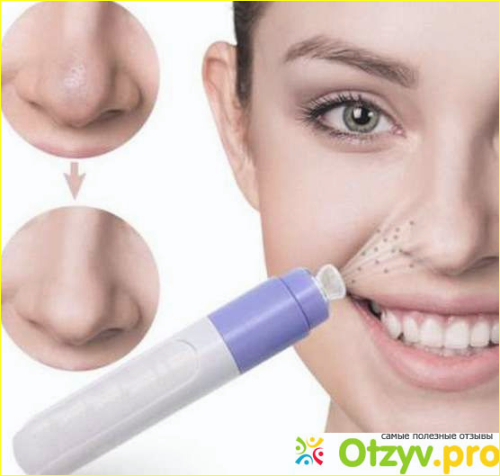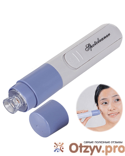 Очиститель действует по типу ваккумных банок для массажа, только он более миниатюрный, работает от одной батарейки АА, которая вставляется в корпус, включаетмя прибор большим пальцем и имеет несколько насадок, действие которых совсем не отличается.